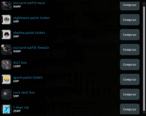 Aqui estão os itens que você pode trocar seus Pontos de Indicação (RP), incluindo itens exclusivos:
